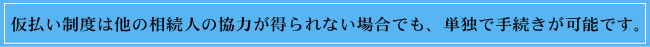 ※この制度は相続人各自が単独で手続きができますが、被相続人(お亡くなりになられた方)に多額の負債(借金等)が有ることが予想される場合などは、ご利用をお勧め致しません。後日多額の負債(借金等)が有ることが判明した場合等に、相続放棄ができなくなる場合が有ります。そのような可能性がある場合には事前にお知らせいただければと思います。